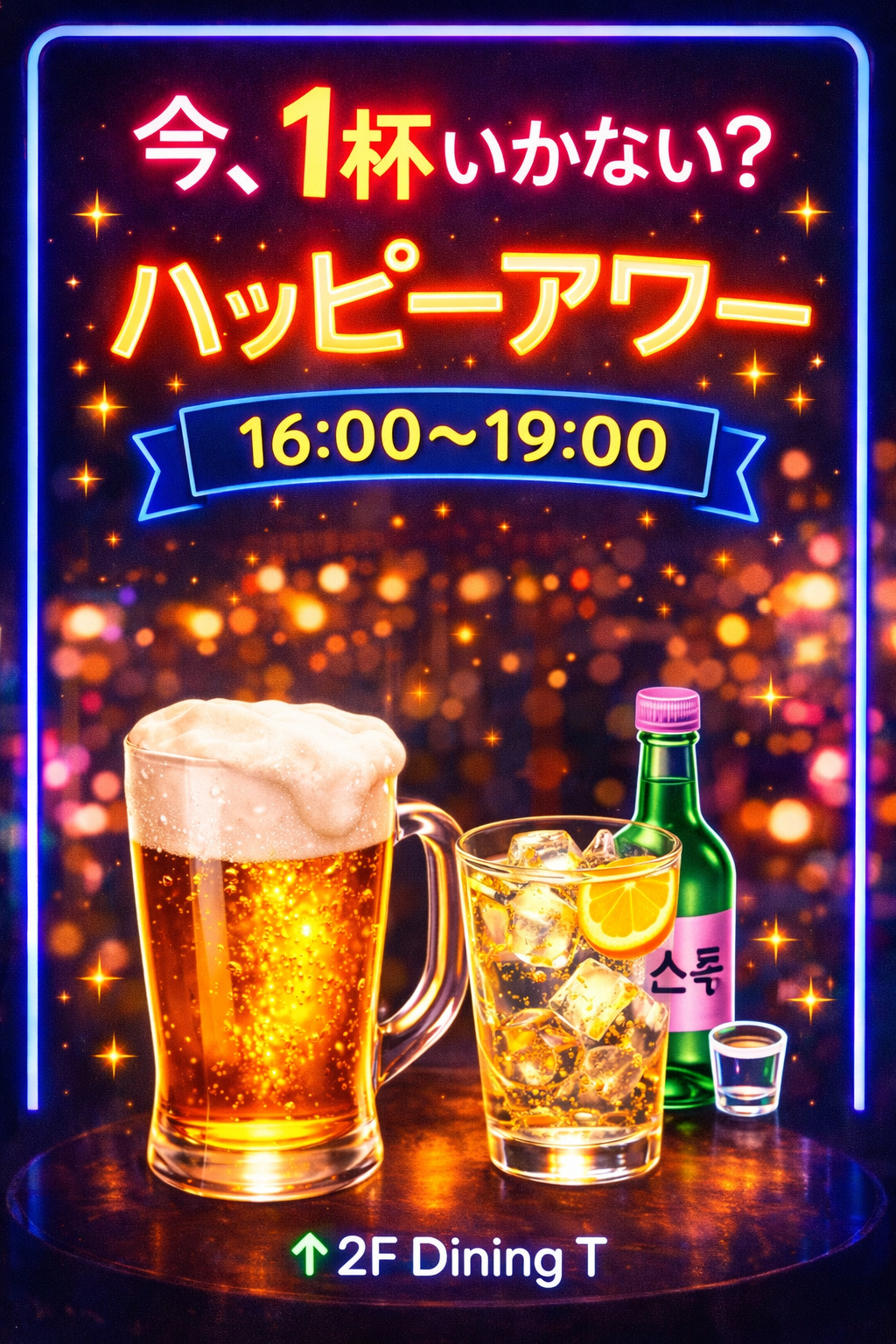 4月1日からハッピーアワー始めました。 16:00〜19:00